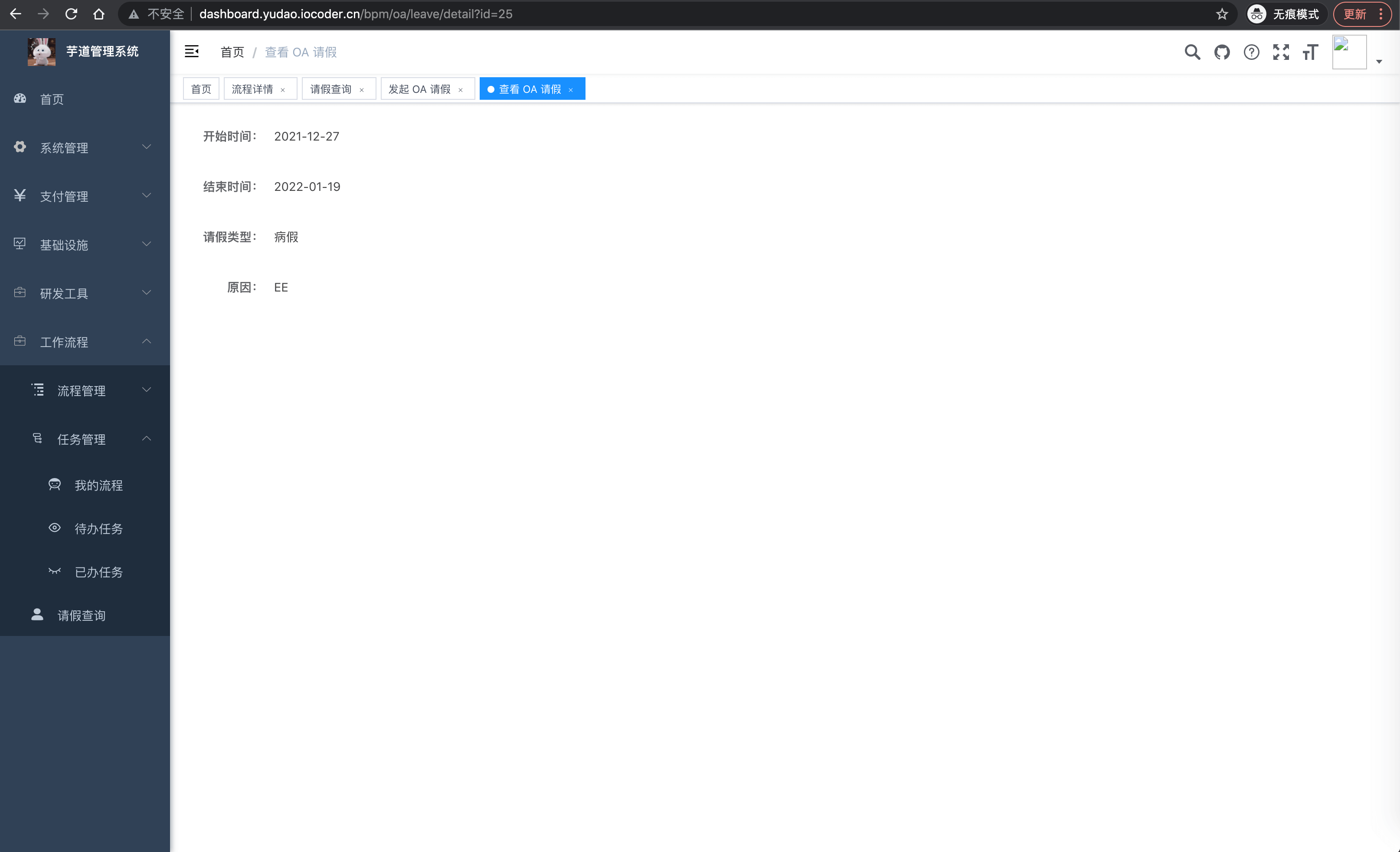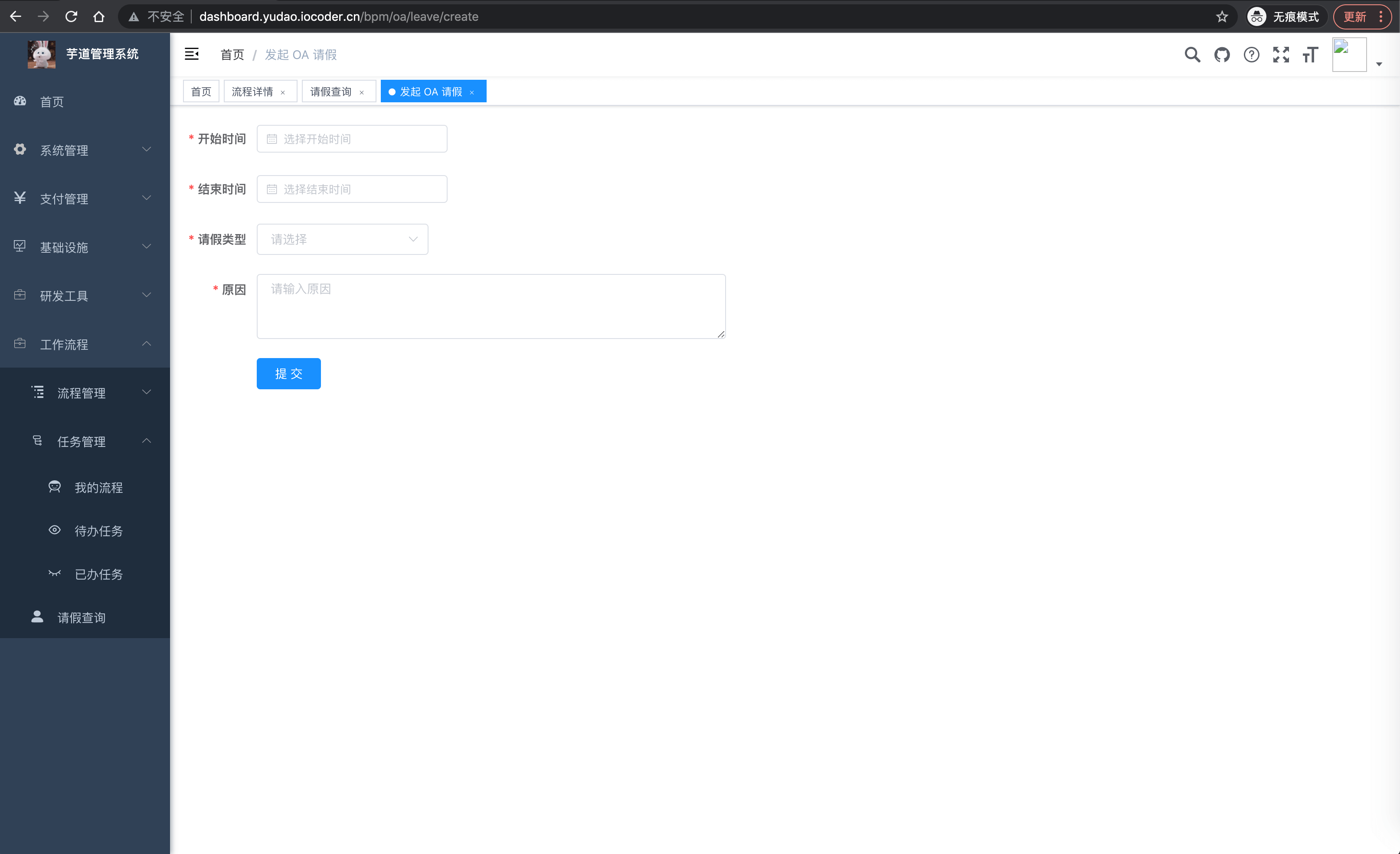 🚀 OA 请假 作为业务自定义接入工作流的使用示例,只需创建请求对应的工作流程,即可进行审批