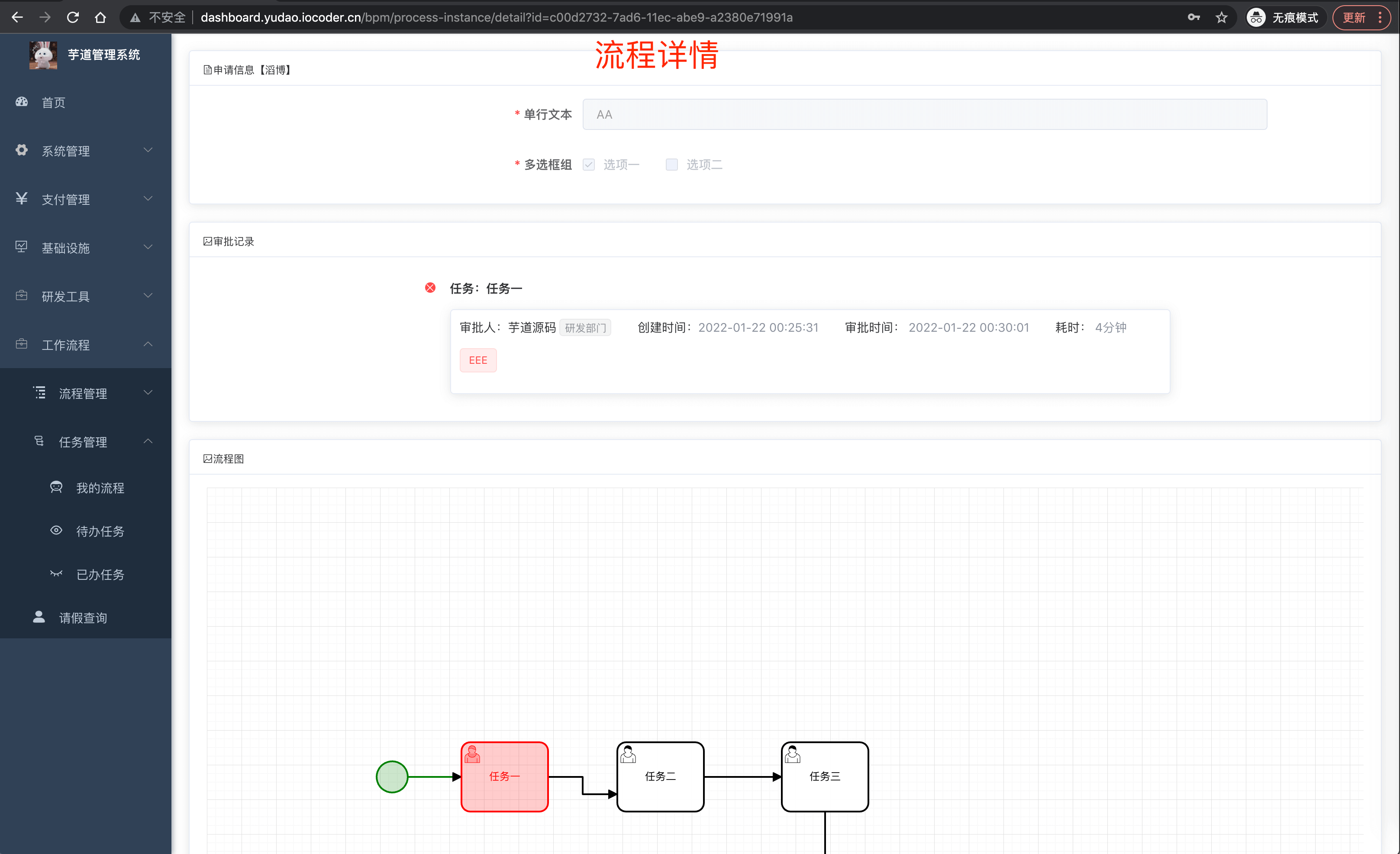 | 🚀 | 待办任务 | 查看自己【未】审批的工作任务,支持通过、不通过、转派、委派、退回、加减签等操作 |