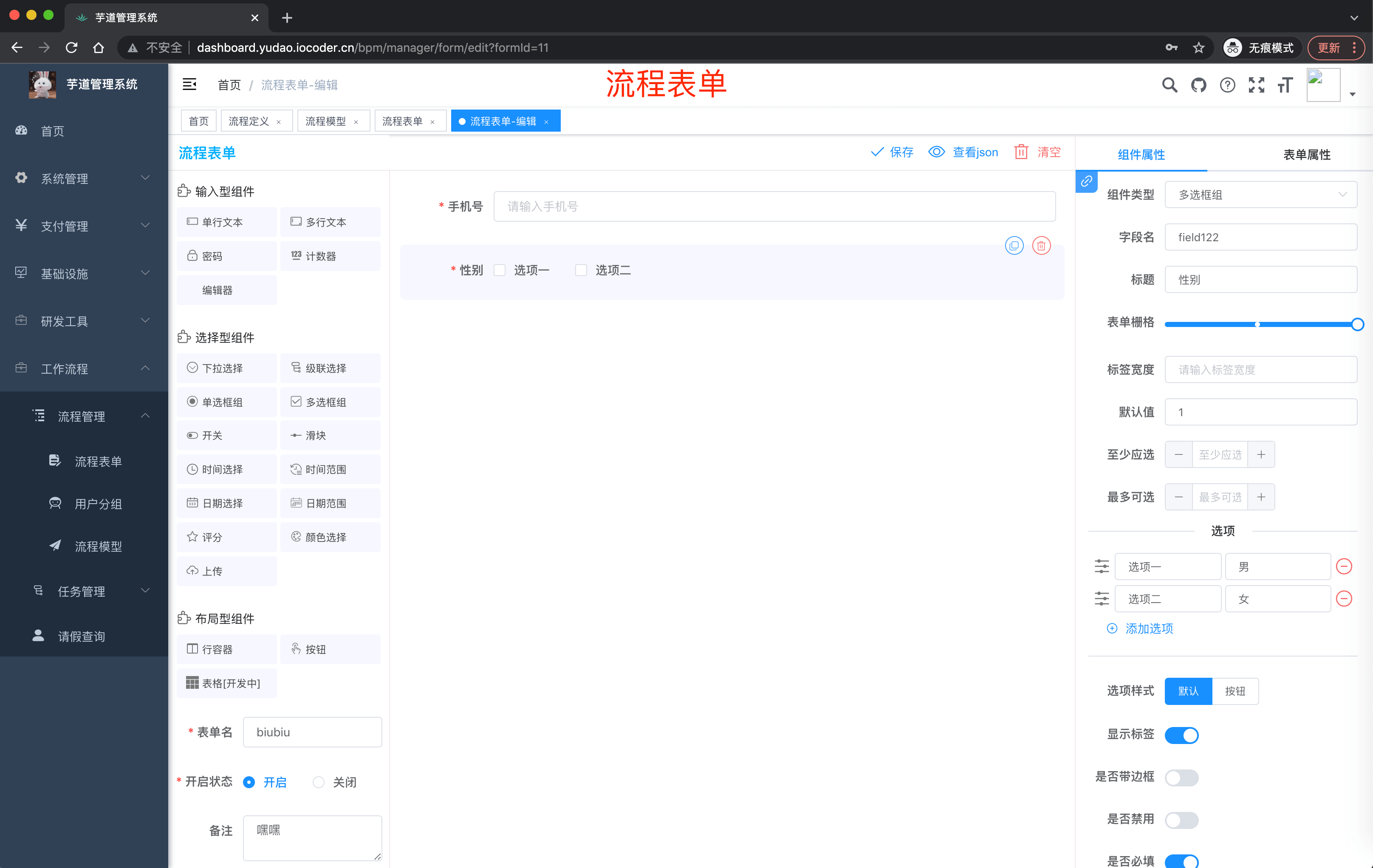 | 🚀 | OA 请假 | 作为业务自定义接入工作流的使用示例,只需创建请求对应的工作流程,即可进行审批 |