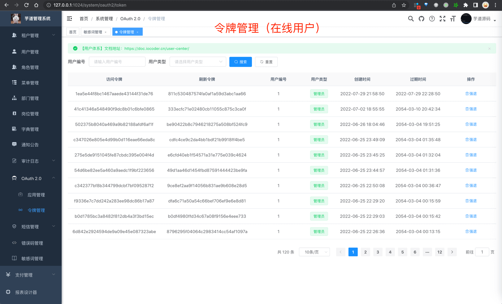 | ⭐️ | 在线用户 | 当前系统中活跃用户状态监控,支持手动踢下线 |